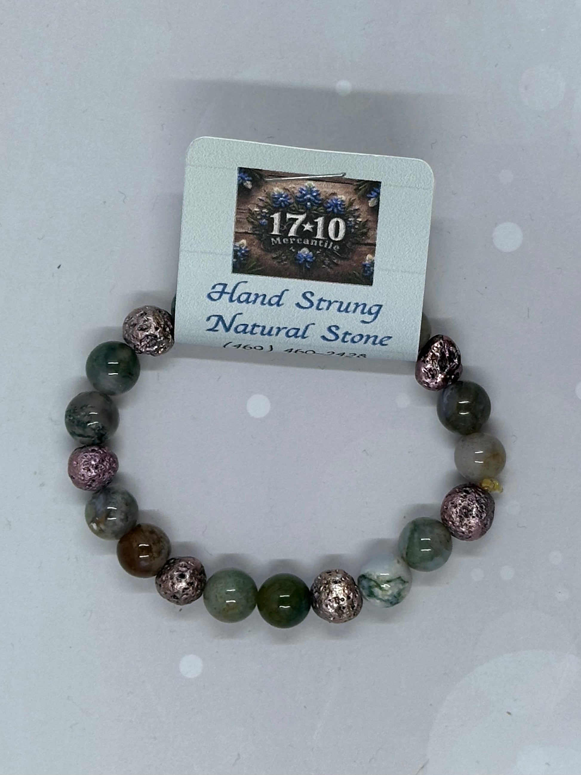 Agate (8mm) & Metallic Lava Stone Bracelet – Handmade Healing Jewelry