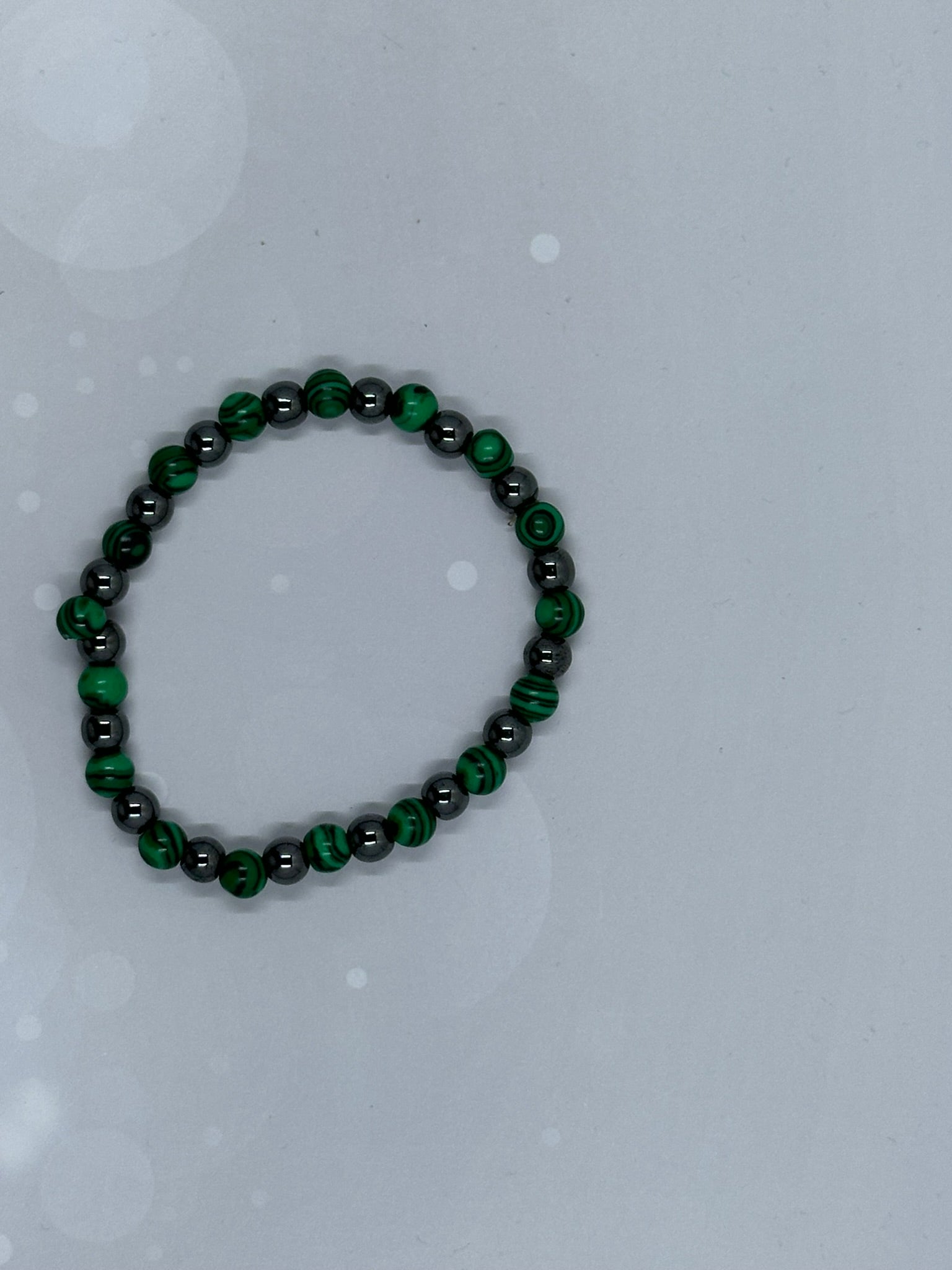 This handcrafted bracelet combines the deep grounding power of hematite with the vibrant energy of green malachite beads. Malachite is often associated with transformation and protection, while hematite is valued for balance, focus, and stability. Together, they create a striking accessory that’s both stylish and meaningful.