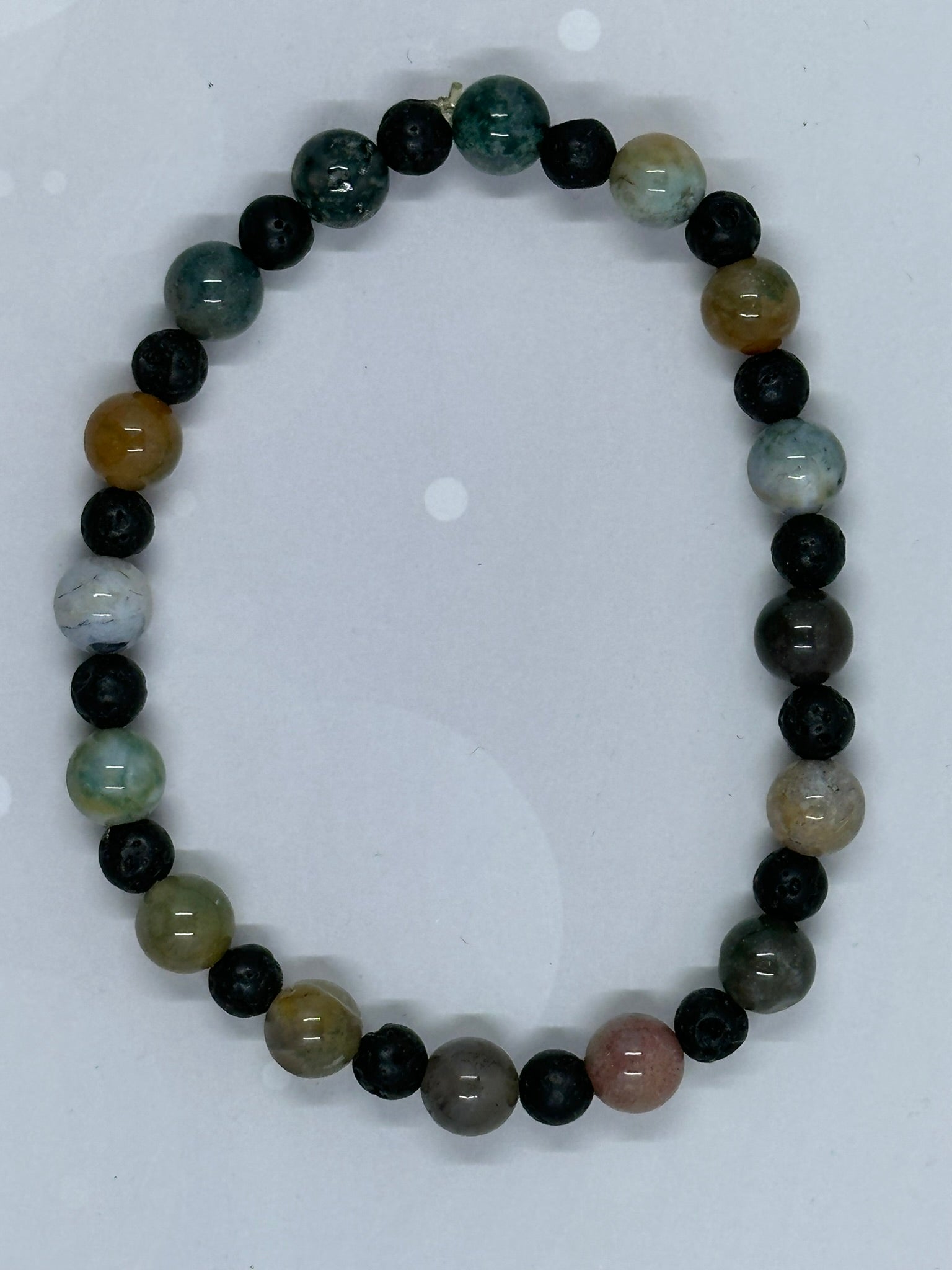 Handmade Lava Rock & Multi-Gemstone Agate (8mm)Bracelet – Aromatherapy & Healing Energy Jewelry