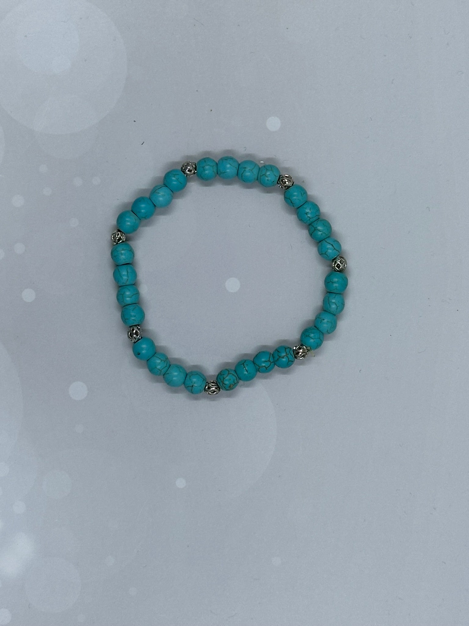 Handmade Turquoise (6mm) Beaded Bracelet with Silver Accents