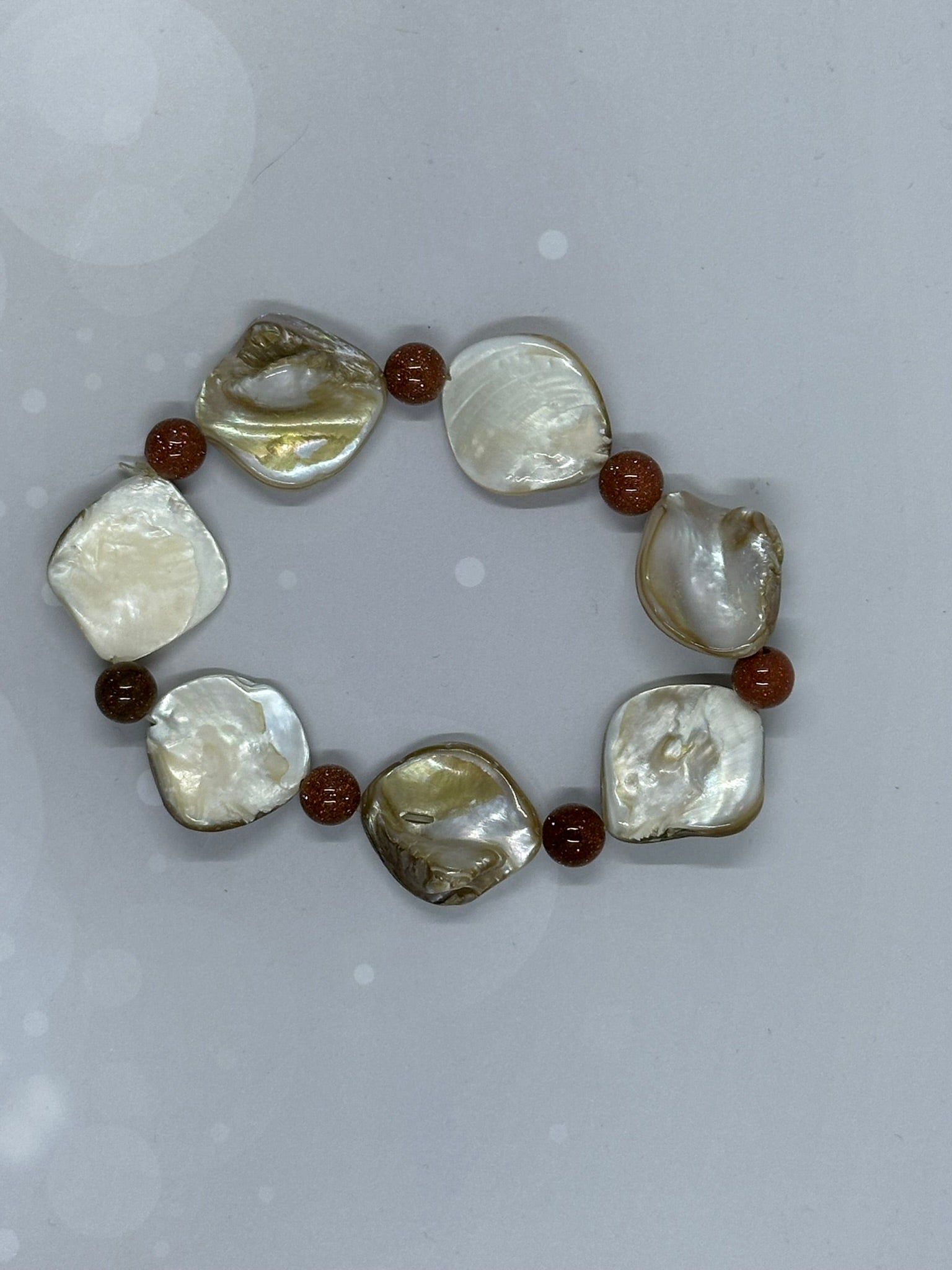 Mother of Pearl and Goldstone Bracelet – Natural Shell & Gemstone Jewelry